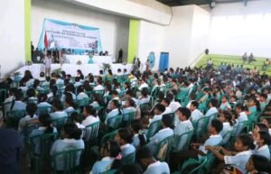 RCS-Bucoli, 20-10-2025—-Vice Ministru no Ministru Koordenador Asuntus Sosiais Mariano Assanami Sabino hato’o liahirak ne’e iha deskursu, wainhira hala’o dialogu da Paz ho estudantes no manorin sira iha Salaun Ginaziu Baucau tersa-feira ne’e.